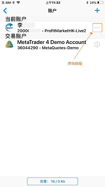 1.进入账户管理界面,点击[]按钮
